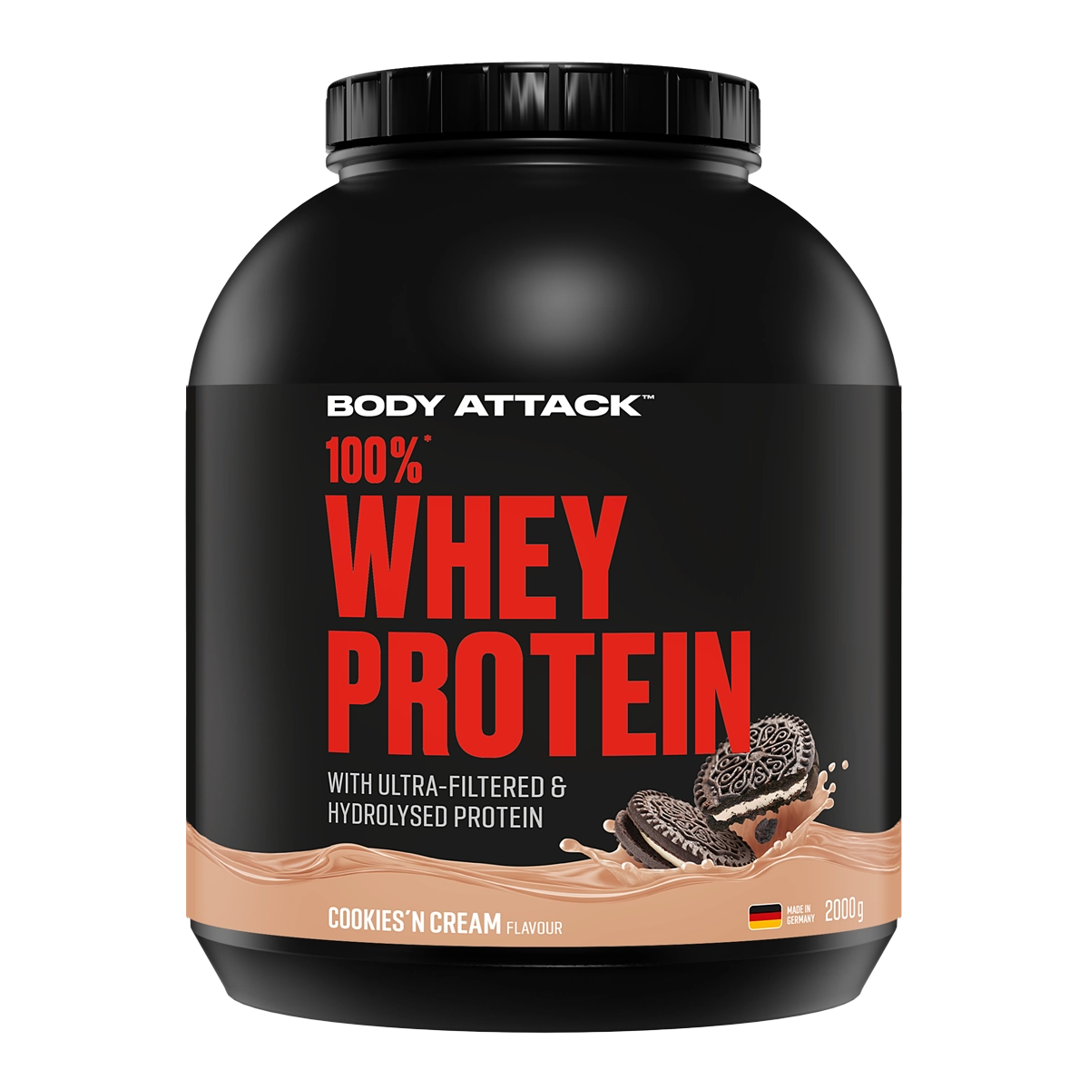 In deinen Eiweiß Shake gehört nur bestes Proteinpulver: Das WHEY PROTEIN. Aber warum? Es ist eine von zwei Proteinarten Whey und Casein und wird aus Molke gewonnen. Dieses Eiweiß punktet mir seiner besonders hohen biologische Wertigkeit. Heißt: Es werden mehr Proteine in deinem Körper umgewandelt, die dir beim Aufbau deiner Muskulatur helfen. Von allen Eiweißen wird Whey vom Körper am schnellsten aufgenommen. Und wir setzen sogar noch einen drauf! Neben reinem Whey Konzentrat besticht das 100 % WHEY PROTEIN durch zusätzliches Hydrolysat. Einfach gesagt: „aufgespaltenes Protein“. Dein Benefit? Das Eiweiß wird noch schneller verwertet - also ein echter Volltreffer für dein Ziel Muskelaufbau!